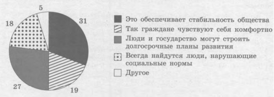 Среди 14-летних подростков был проведён опрос о том, почему необходимо, чтобы все люди соблюдали социальные нормы. Полученные результаты (в % от числа опрошенных) представлены в виде диаграммы.