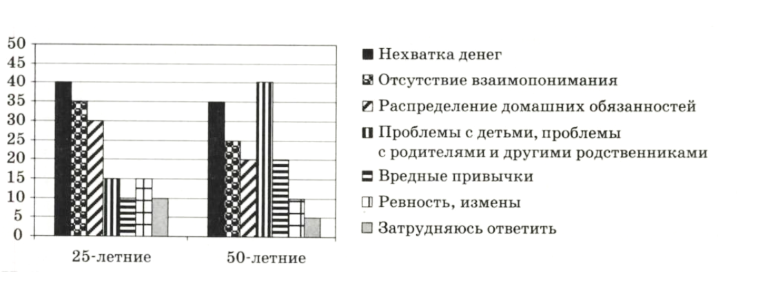 В ходе социологических опросов 25-летним и 50-летним гражданам страны Z предлагали высказать свое мнение о причинах семейных ссор. (Можно было выбрать несколько ответов.)