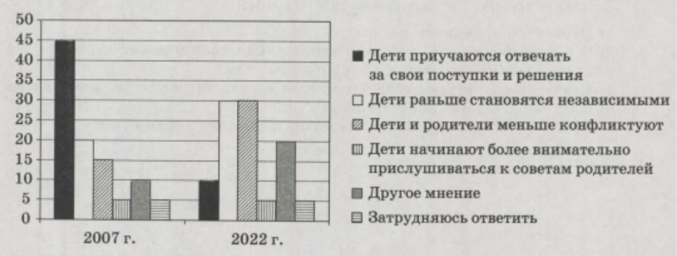 В ходе социологических опросов совершеннолетним жителям страны Т задавали вопрос: «Почему дети в возрасте 18-25 лет, не состоящие в браке, должны жить отдельно от родителей?». Полученные результаты (в % от числа опрошенных) представлены в графическом виде.