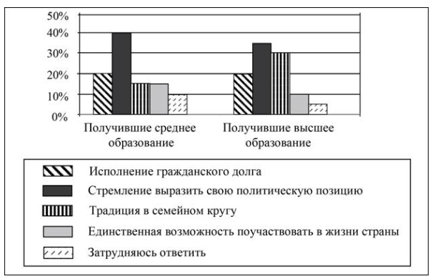 В ходе социологического опроса совершеннолетних жителей страны N им предложили определить мотив их участия в голосовании на парламентских выборах. Полученные результаты (в % от числа опрошенных) представлены в виде диаграммы.