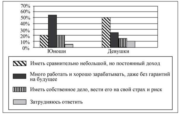 В ходе социологического опроса совершеннолетних юношей и девушек страны N им задавали вопрос: «Чтобы Вы предпочли, если бы у Вас была возможность выбирать?» Полученные результаты (в % от числа опрошенных) представлены в виде диаграммы.