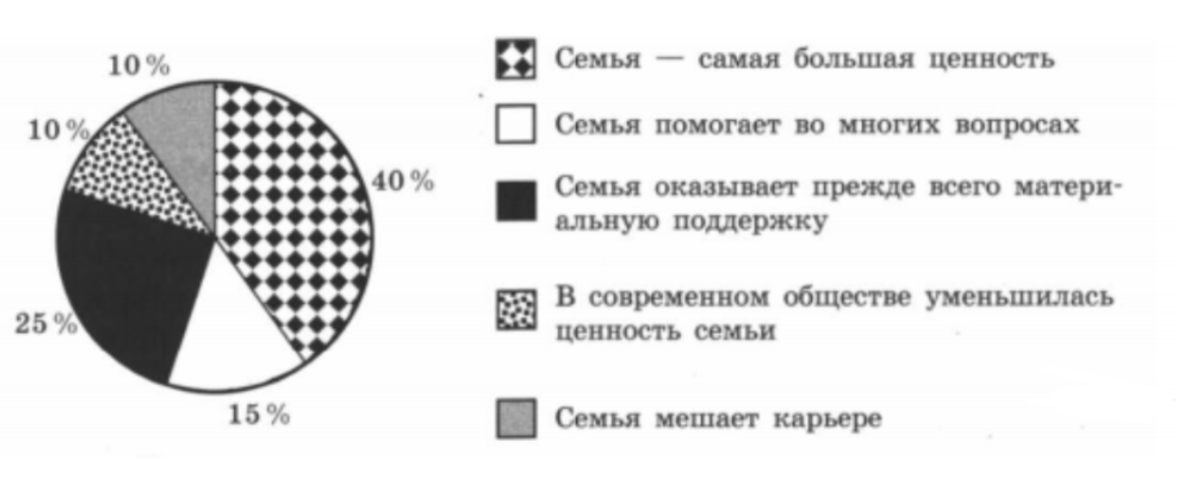 Учёные задавали совершеннолетним гражданам вопрос: «Какую роль семья играет в жизни человека?» Полученные результаты (в % от числа опрошенных) представлены в графическом виде.