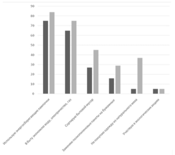 В ходе социологических опросов совершеннолетние граждане страны Z рассказывали о своем участии в решении экологических проблем. Полученные результаты (в % от числа опрошенных, можно было дать несколько ответов) представлены в виде диаграммы.