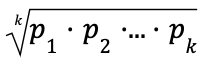 Среднее геометрическое k чисел p1, p2, ..., pk вычисляется по формуле