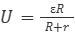 К источнику с ЭДС ε=130 В и внутренним сопротивлением r=1 Ом хотят подключить нагрузку с сопротивлением R (в Ом). Напряжение (в В) на этой нагрузке вычисляется по формуле . При каком значении сопротивления нагрузки напряжение на ней будет равно 120 В? Ответ дайте в омах.