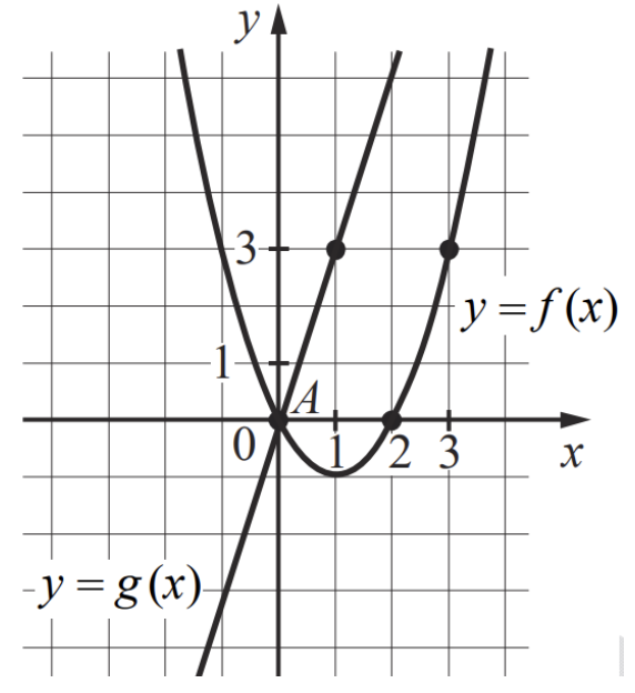На рисунке изображены графики функций f(x)=ax2+bx+c и g(x)=kx, пересекающиеся в точках A и B. Найдите абсциссу точки B.