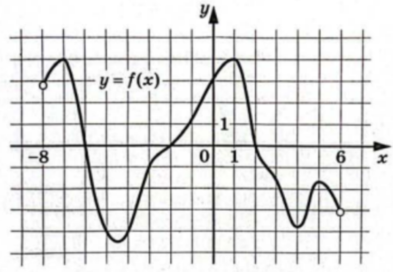 На рисунке изображен график функции у=f(x), определенный на интервале (-8; 6). Определите количество целых точек, в которых производная функции f(x) отрицательна.