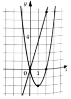 На рисунке изображены графики функций f(x)=kx+b и g(x)=ax2+bx+c, которые пересекаются в начале координат и в точке A. Найдите абсциссу точки A.