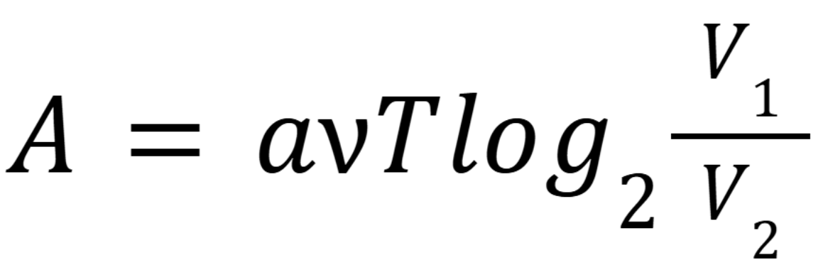 Водолазный колокол, содержащий в начальный момент времени = 2 моля воздуха объёмом V1 =18 л, медленно опускают на дно водоёма. При этом происходит изотермическое сжатие воздуха до конечного объёма V2. Работа, совершаемая водой при сжатии воздуха, определяется выражением , где