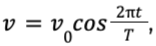 Груз массой 0,25 кг колеблется на пружине. Его скорость v меняется по закону где t - время с момента начала колебаний, T = 2 с - период колебаний, v0= 1,6 м/с. Кинетическая энергия E (в джоулях) груза вычисляется по формуле